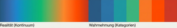 Die Realität ist ein unordentliches Kontinuum, aber unser Gehirn braucht scharfe, klare Kategorien, um sie zu verstehen. Dr. Dutton vergleicht unser Gehirn mit einem Rasenmäher, der auf einem weiten Feld aus Gras gerade Linien zieht. Die Realität ist das Feld, aber unser Verstand kann sie nur in Form der geraden, künstlichen Linien verarbeiten.
